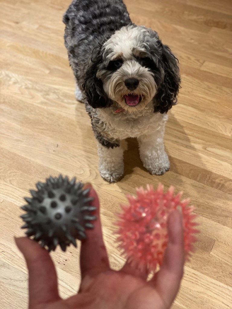 Now listen, before you accuse me of being a jealous younger brother, I would like to plead my case. My humans expect a lot from me. First, they expect me to sit patiently home while they go do fun things. Second, they expect me to distinguish between my toys and Sister’s toys and instruct me to NEVER touch Sister’s toys. To prove my point, I would like to submit Exhibit A and Exhibit B. One is Sister’s toy and one is mine. Am I really supposed to know the difference? I’m a colorblind puppy, after all.